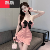 YIBUSHENG蝴蝶结拼接露锁骨抹胸连衣裙甜辣风小个子收腰不规则显瘦性感短裙