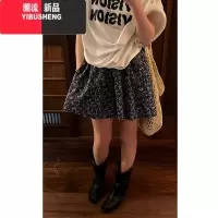 YIBUSHENG黑色松紧腰雪纺碎花短裤休闲裤女季a字裙裤小个子直筒阔腿热裤