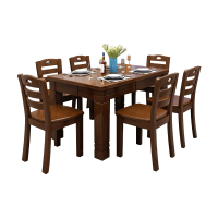 臻远 ZY5110240 实木餐桌椅组合胡桃色长方形餐桌椅 1.45米一桌六椅