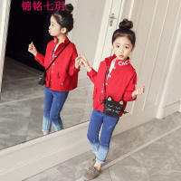 锦铭七玥女童外套春秋2018新款韩版童装儿童春装中大童字母印花长袖风衣潮