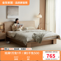 全友家居 北欧原木风板式床储物多功能床屏卧室落地双人大床