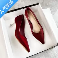 SUNTEK41-43大小码绸缎新娘婚鞋女2022新款尖头细跟红色313233高跟鞋女