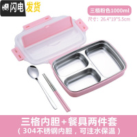 三维工匠上班族分隔型饭盒可微波炉加热双层保温大容量便当盒学生餐盒套装 304内胆粉色三格+筷勺粉