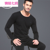 纯棉秋衣秋裤男士薄款秋冬棉毛衫全棉青年黑色男保暖内衣套装