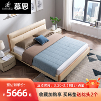 慕思艾慕皮艺床 现代简约双人床主次卧1.8米软包真皮床卧室 简爱