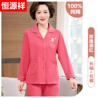 恒源祥妈妈睡衣女春秋纯棉长袖薄款中老年全棉家居服套装可外穿夏