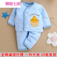锦铭七玥宝宝薄棉衣套装纯棉儿童保暖夹棉新生儿衣服0-1岁婴幼儿一件代发