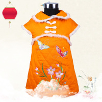 纯棉加绒夹棉冬款儿童唐装宝宝中国风旗袍裙新年装女童长马甲棉衣