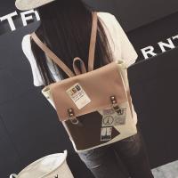 2017新款学院风双肩包女英伦复古学生大书包时尚潮流撞色徽章贴布大容量包