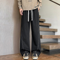 七斓2022秋季新款高级感男生九分裤直筒宽松免烫显瘦垂感系带西装裤男