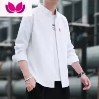 牛津纺白色衬衫男士长袖修身韩版休闲青年衬衣薄款男装春秋季