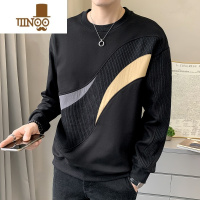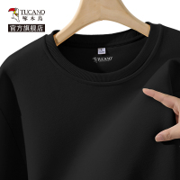 啄木鸟黑色长袖t恤男纯棉秋季25新款宽松圆领休闲百搭打底衫卫衣
