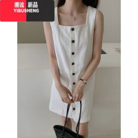 YIBUSHENG白色苎麻吊带背心裙女季宽松轻薄中长款内搭打底棉麻无袖连衣裙