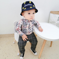 女宝宝春装2018新款3套装2婴儿童0女童1岁春秋洋气格子衬衫衬衣服