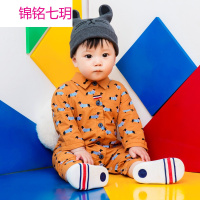 锦铭七玥婴儿衣服宝宝连体衣春秋棉爬服0岁3个月秋冬睡衣新生儿哈衣