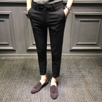 冬季裤子男英伦西裤秋冬款长裤男士休闲裤韩版修身九分裤小脚裤潮【T355九分裤】黑色