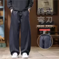 美式宽松休闲裤男士加绒秋冬保暖弹力直筒裤子潮牌阔腿拖地长裤男