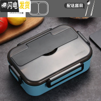 三维工匠304不锈钢保温饭盒 日式学生分隔餐盒上班族便携带盖大容量便当盒 新款蓝色两格[配送餐具]