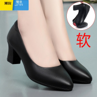 聚范工作鞋女软底黑色高跟鞋细跟职业装尖头低跟软皮工装舒适上班单鞋