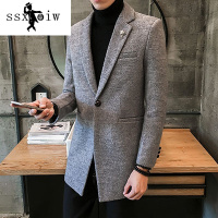 ssxoiw男士秋冬装中长款风衣外套韩版修身风衣男青年休闲英伦风大衣男潮