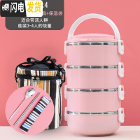 三维工匠不锈钢多层保温饭盒便当盒学生便携1人分隔型女上班族3格餐盒套装 四层(北欧粉)+餐具+保温袋