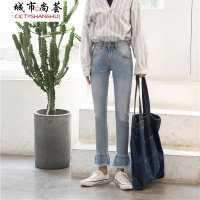 2018春秋新款显瘦复古高腰微喇牛仔裤女修身小喇叭裤女裤长裤CYLLCY