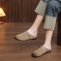 头层牛皮拖鞋女2026春季新款懒人圆头外穿一脚蹬平底软底包头拖鞋