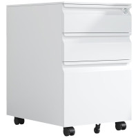 锦北桌下活动柜铁皮文件柜可移动矮柜办公室储物柜床头柜白色鹅颈拉手
