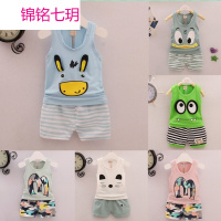 清仓浪莎儿童家居服套装春夏薄款短袖纯棉男童女童睡衣七分裤