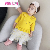 锦铭七玥儿童套装女宝宝冬装婴儿纯色纱裙裤子小童假两件裤子套装一件代发