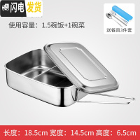 三维工匠304不锈钢饭盒学生餐盒大容量长方形上班族食堂蒸饭盒分隔便当盒 304大号两格18cm送餐具