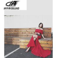 Kruidvat2017新款春季一字肩长款修身红色鱼尾结婚宴会晚礼服女