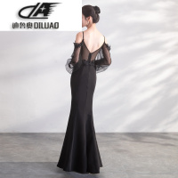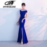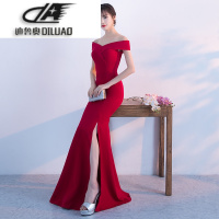 2017新款一字肩拖尾礼服鱼尾修身显瘦宴会晚礼服长款秋季主持人女