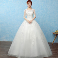 婚纱礼服 新娘齐地一字肩韩式大码长袖显瘦婚纱冬季2017新款红色