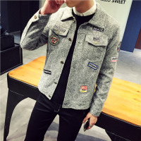 莞馨(wanxin)新款2016秋季新款翻领夹克衫男士加肥加大码毛呢外套青少年日系潮男装
