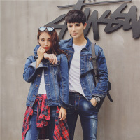 莞馨(wanxin)新款潮男2016秋装新款男女韩版修身牛仔微弹长袖情侣套装夹克牛仔套装