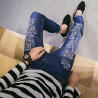 莞馨(wanxin)新款2016潮男乞丐裤个性破洞裤 弹力韩版修身小脚裤 秋冬小码长裤