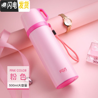 三维工匠保温杯男女士定制水杯大容量304不锈钢刻字学生便携泡茶杯子 粉色