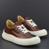 聚范男鞋夏季透气2024新款百搭休闲板鞋男士厚底低帮工装皮面马丁潮靴