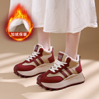 秋季小白鞋新款韩版ins女学生厚底增高皮面加绒休闲棉鞋