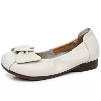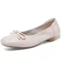 春秋圆头真皮蝴蝶结芭蕾单鞋女平底瓢鞋法式一脚蹬四季豆豆鞋