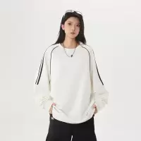 春秋季新款纯色圆领卫衣情侣套头慵懒上衣潮牌休闲体恤打底衫男装