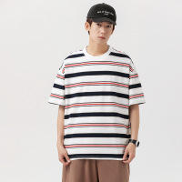 复古日系港风情侣条纹短袖T恤夏季圆领休闲体恤男装撞色潮牌百搭t