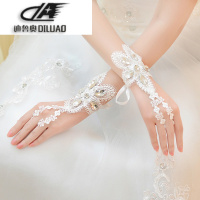韩式新娘手套绑带白色结婚婚纱长款镶钻蕾丝绣花钉珠露指婚礼手套