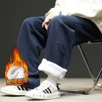 潮牌秋季新款抽绳松紧腰美式羊羔绒休闲宽松直筒加绒长裤男