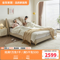 全友家居奶油风轻奢真皮床分体式可调节软靠卧室皮床双人床皮艺床软床家具