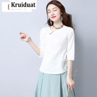Kruidvat春夏新款绣花民族风女装宽松中袖棉麻衬衫B015白色