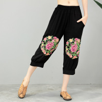 薇侣2017新品夏季新款民族风精致绣花宽松裤七分裤棉麻灯笼裤