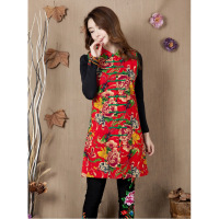 秋新款女装棉麻民族风印花复古改良修身中长款马甲外套