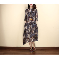 顺崇2018春季复古花色棉麻连衣裙中长款大码民族风女装花袍子